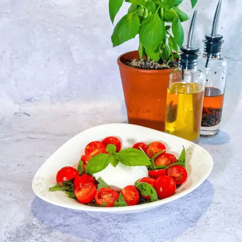 burrataBurrata, roquette, tomates cerises, basilic, huile d’olive extra vierge, vinaigre balsamique.