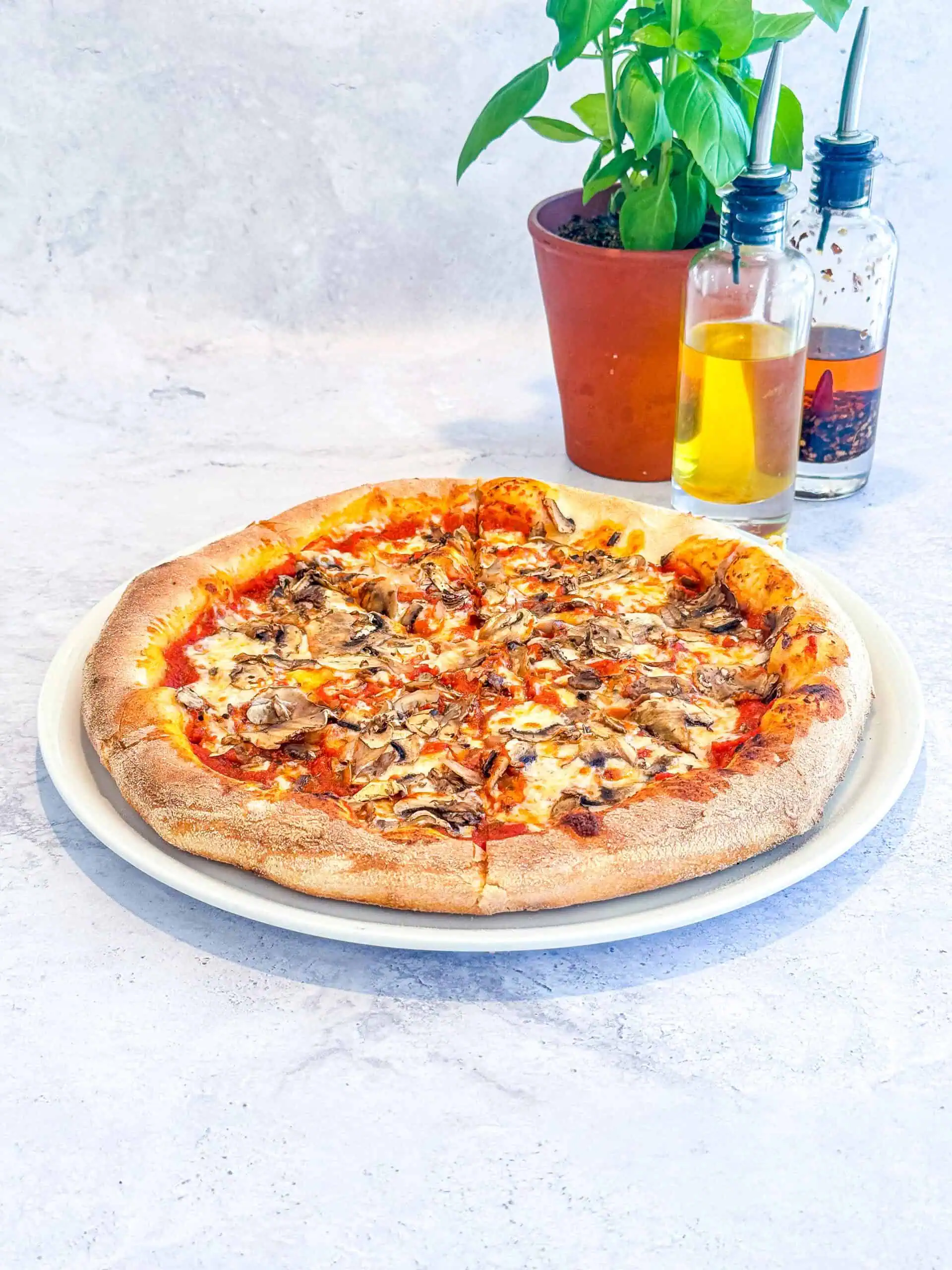 Pan FunghiBase tomate, mozzarella, mélange de champignons.