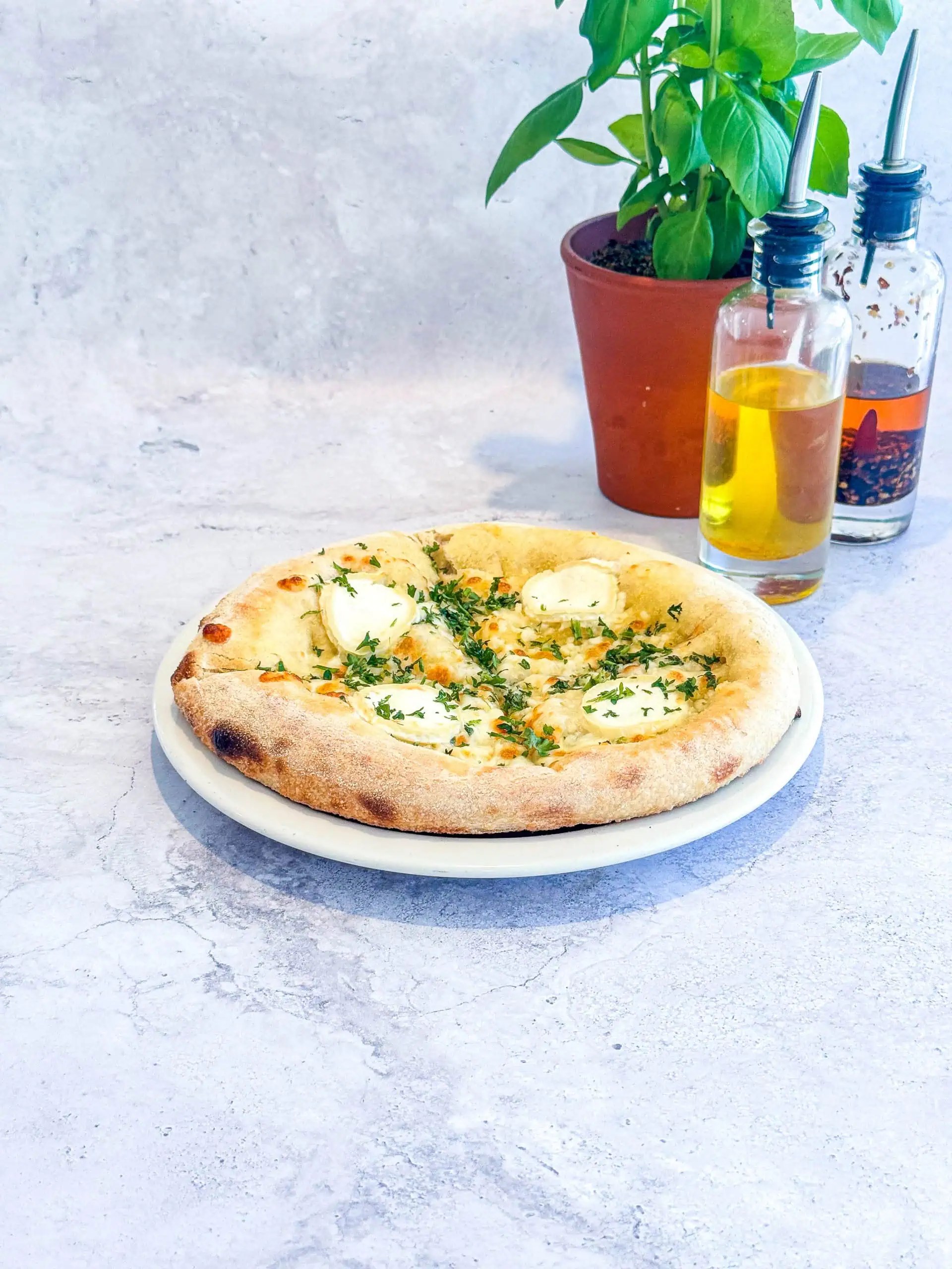 Chèvre mielBase créme, mozzarella, chèvre, miel, basilic.